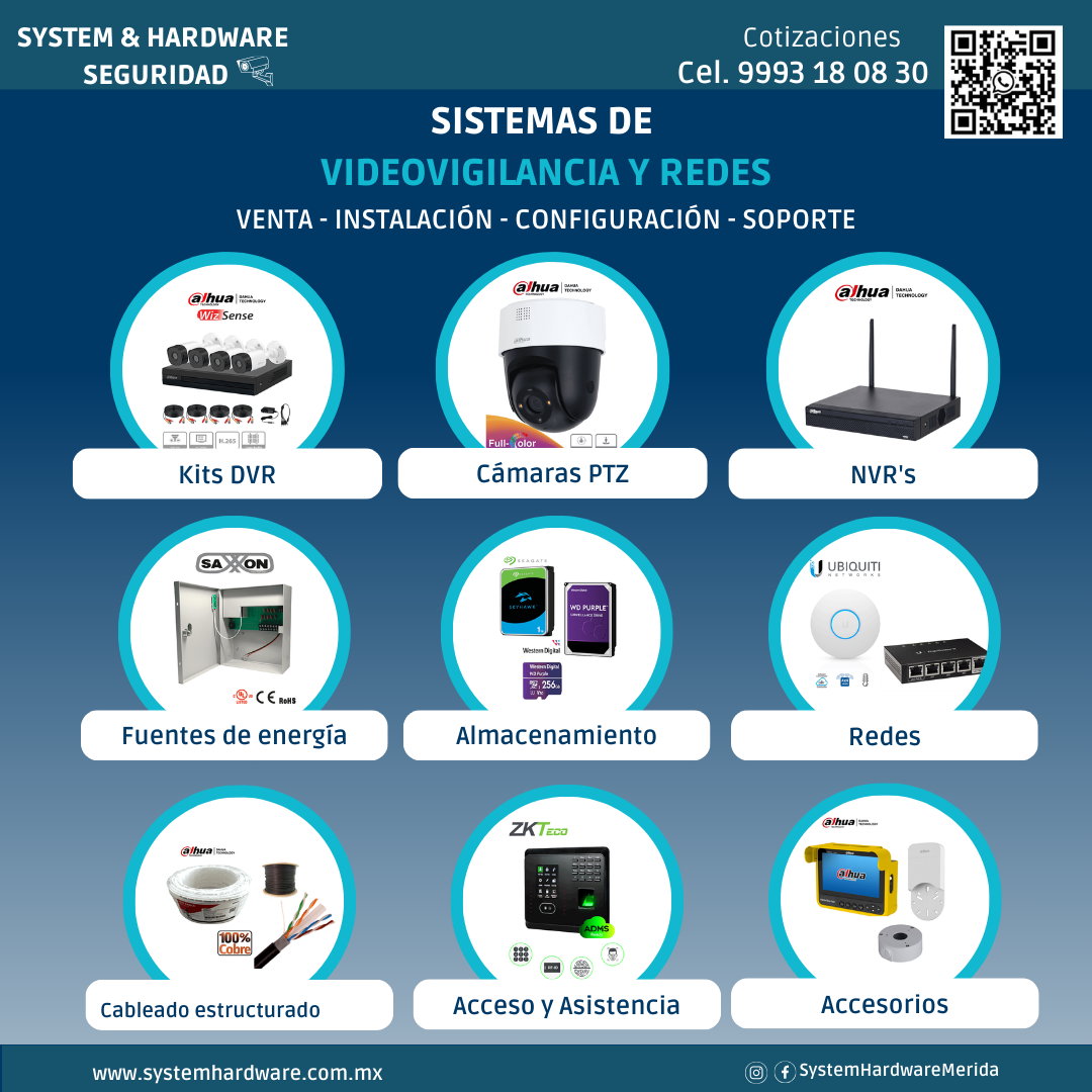 Ofrecemos una amplia gama de dispositivos de videovigilancia de última generación, desde cámaras de alta resolución hasta sistemas de grabación avanzados. Complementamos esta oferta con soluciones de control de acceso y equipos de red de vanguardia, brindándote todo lo necesario para fortalecer la seguridad y la conectividad de tu entorno.